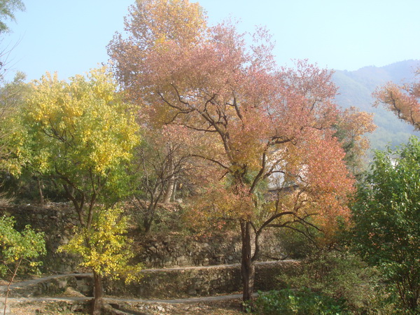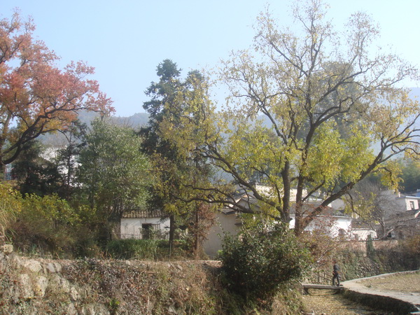 在往塔川村去的路上,此次當(dāng)仁不讓的做起了我們的導(dǎo)游的黟縣同學(xué)告訴我們:塔川村依山而建,層層疊疊,錯(cuò)落有致,遠(yuǎn)遠(yuǎn)望去,就好象一座寶塔矗立在山谷之中。故為之“塔”。山谷里,一條清澈的小溪穿村潺潺流過(guò),給小村帶來(lái)無(wú)窮靈氣,故為之“川”,兩個(gè)合起來(lái),即為“塔川”。塔川古樹(shù)到處都是,以烏桕樹(shù)為主,還有銀杏樹(shù),香榧樹(shù)、樟樹(shù)和楓樹(shù)等等,每到秋季,滿(mǎn)山的樹(shù)葉好似不經(jīng)意被打翻的顏料桶,色彩斑斕,而極具徽派特色的塔川村古民居掩映其中,端的是美不勝收。